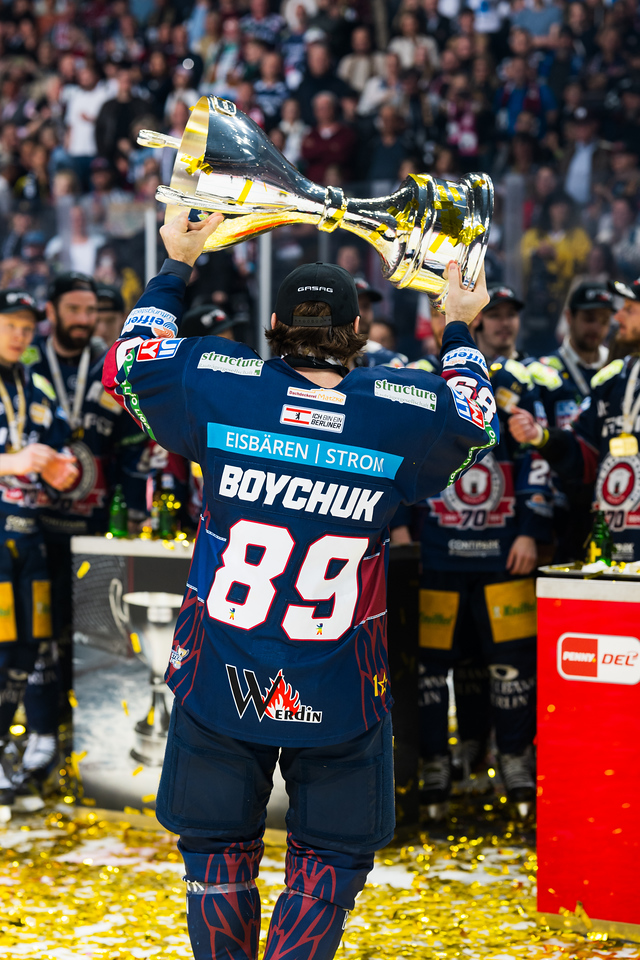Mein persönliches Highlight – bei den vielen, die ich mit Chucky hatte – war wohl die letzte Meisterschaft, in der er mich versucht hat, auf’s Eis zu holen und gemeinsam den Pokal hochzuheben. Vielleicht wohlwissend, dass es seine letzte Meisterschaft mit den Eisbären sein würde. Die Security machte da leider nicht mit, aber der Gedanke, dieser Augenblick wird mir persönlich immer in Erinnerung bleiben.